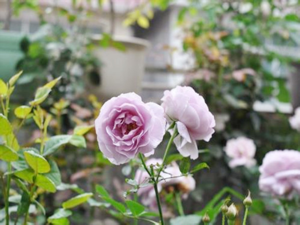 月季花喜光,在生長季節(jié)要有充足的陽光,每天至少要有6小時以上的光照,否則,只長葉子不開花,即便是結了花蕾,開花后花色不艷也不香。薰衣草花環(huán)和薰衣草花束是月季中的同一個品種,枝條較細,幾乎無刺,多頭開放,花朵顏色為藍紫色,花徑在6-8厘米,花重瓣,沒有香味,薰衣草花環(huán)長勢迅速,樹勢較強,分枝性不如其他品種。喜好全日照,微酸性土壤,花期自春末至秋末,為藤本或大灌木型品種。
